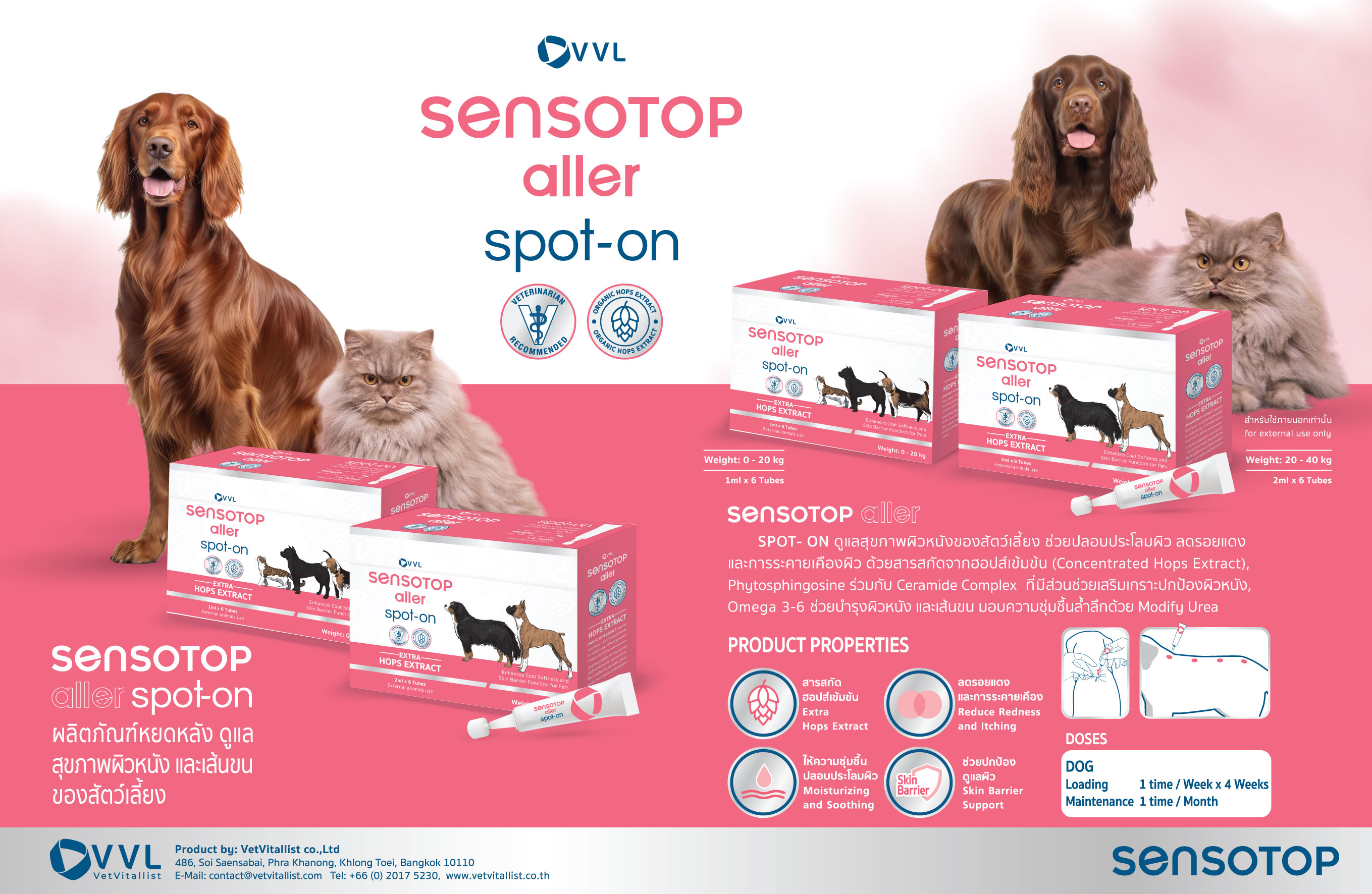กลุ่มผลิตภัณฑ์ ประกอบการ รักษา และฟื้นฟูสุขภาพผิวหนังของสัตว์เลี้ยง อย่างตรงจุด